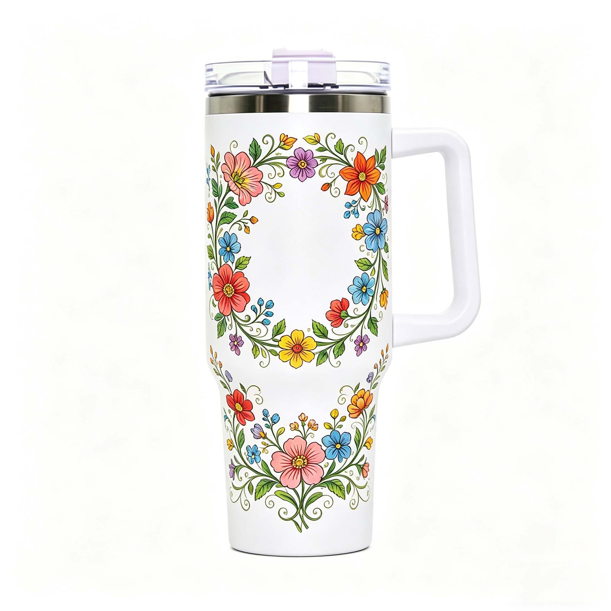 wholesale 40oz Sublimation Blanks: White Insulated Tumbler with Handle & Straw
