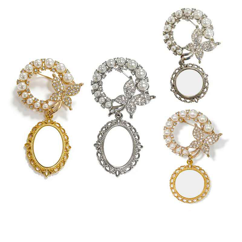Sublimation blank Badge with pearl and diamond and insert in 2 color 2 shape